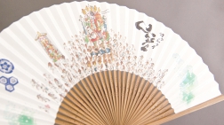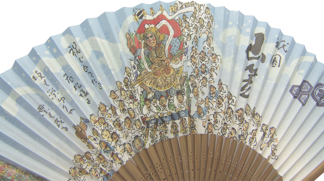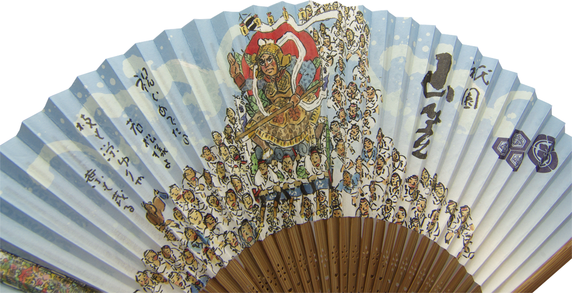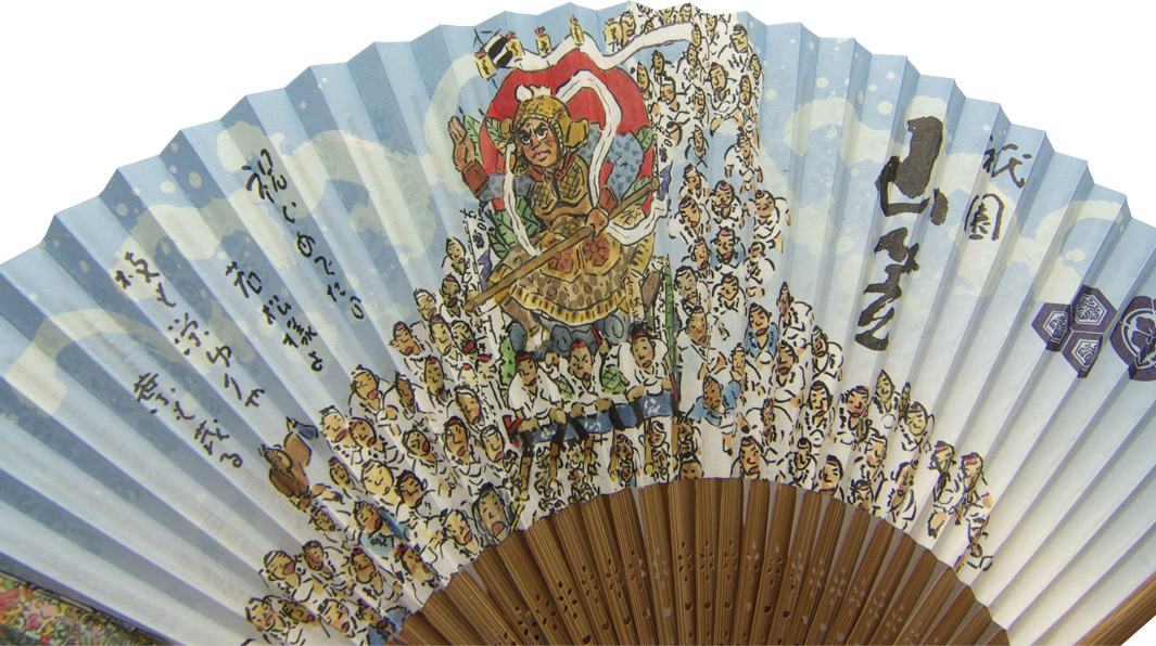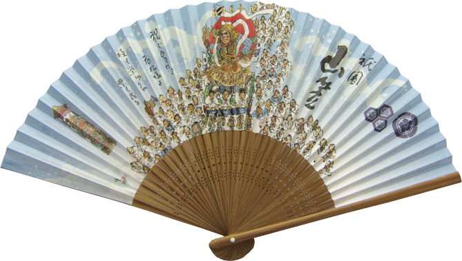 ■ 山笠扇子 山笠扇子「韋駄天 - いだてん - 」¥2,500(税抜き) 7.5寸(約22cm)骨数35間 唐木骨「韋駄天走り」として足の速い神とされる韋駄天を描いています。鬼が仏舎利を盗んだ際、瞬時に追って取り返した俗伝に由来します。 表は、初瀬画韋駄天です。 裏は金太夫筆、博多方言です。 山笠扇子「いざ出陣!」 ¥2,500(税抜き) 7.5寸(約22cm)骨数35間 唐木骨 ページトップへ
